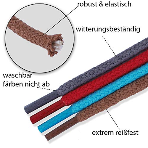 Con belle scarpe e lacci per scarpe ancora più eleganti e dal diametro di 3-4 mm. Disponibile in nero, blu, marrone, blu, verde, rosso, ecru, bianco, beige, turchese e molti altri colori. Lunghezze disponibili: 60 cm, 75 cm, 90 cm, 100 cm, 110 cm, 130 cm, 145 cm, 150 cm, 180 cm e 200 cm.