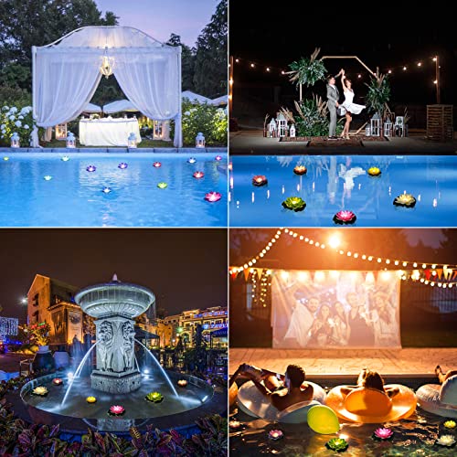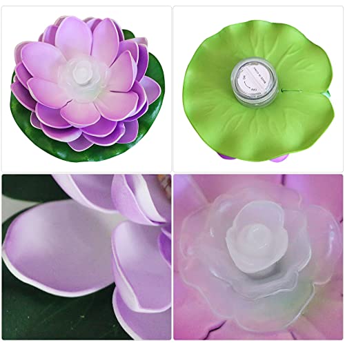 Materiale: realizzato in plastica morbida espansa, flessibile e realistica al tatto. Ogni luce galleggiante per piscina ha 4 strati di petali di fiori e un cuscinetto verde ninfea, vividamente come un vero.