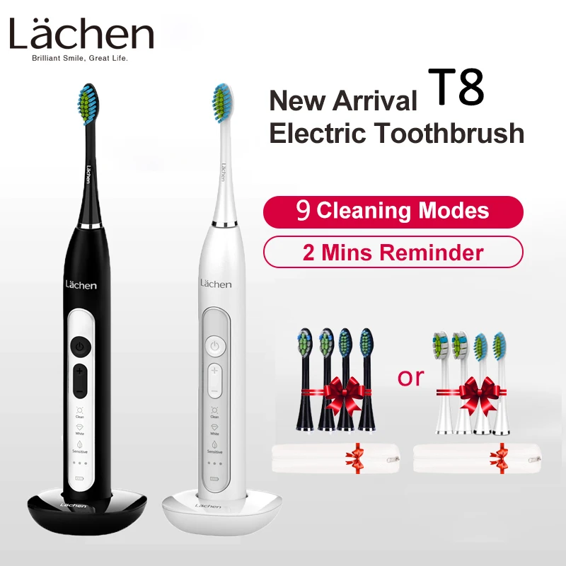 Lachen T8B Powerful Sonic Electric Toothbrush 9 Modes Rechargeable Adult Tooth Brush 2 Min Timer Toothbrushing w/ Charging Base