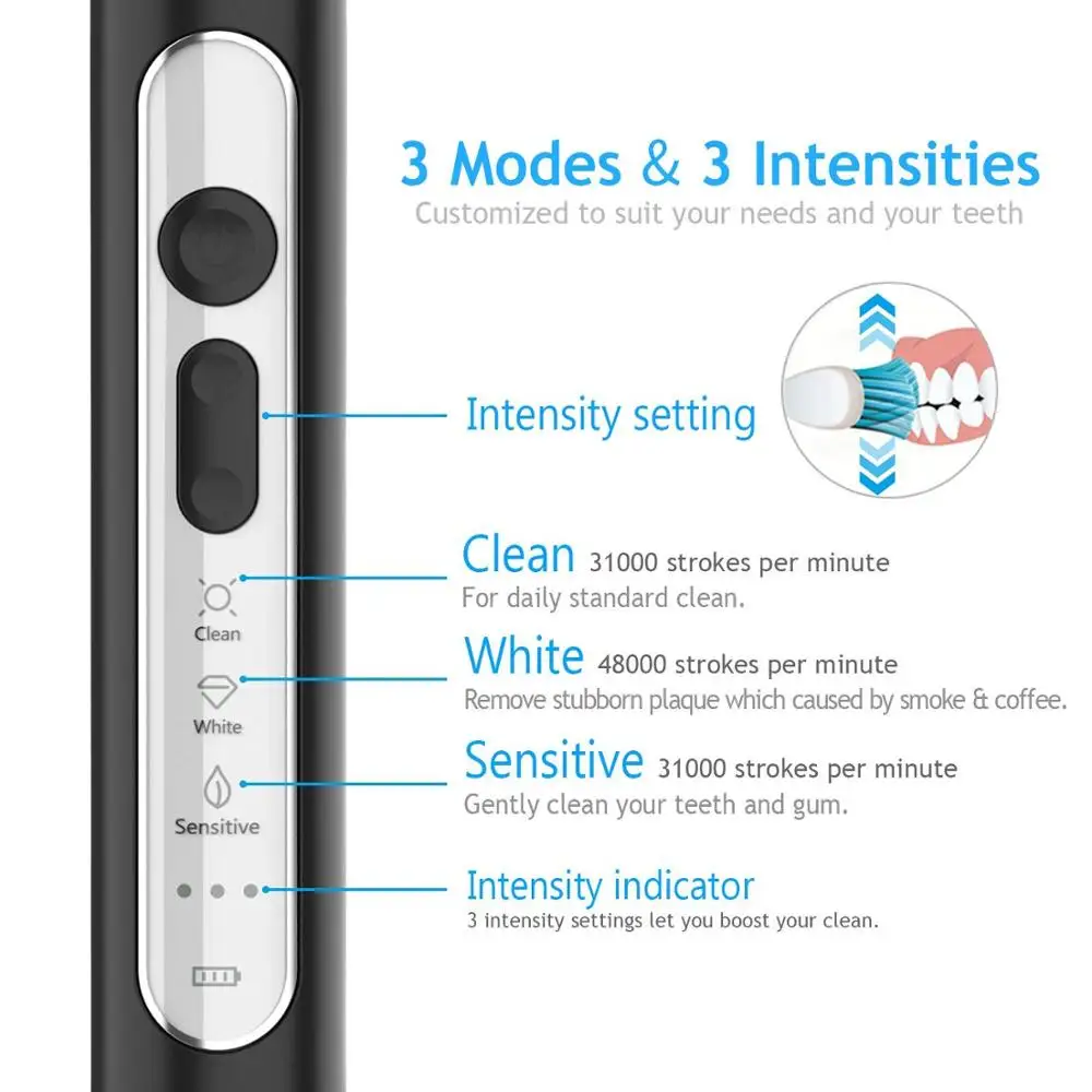 Lachen T8B Powerful Sonic Electric Toothbrush 9 Modes USB Rechargeable 4 Tooth Brush Adult Washable Whitening w/ Charging Base