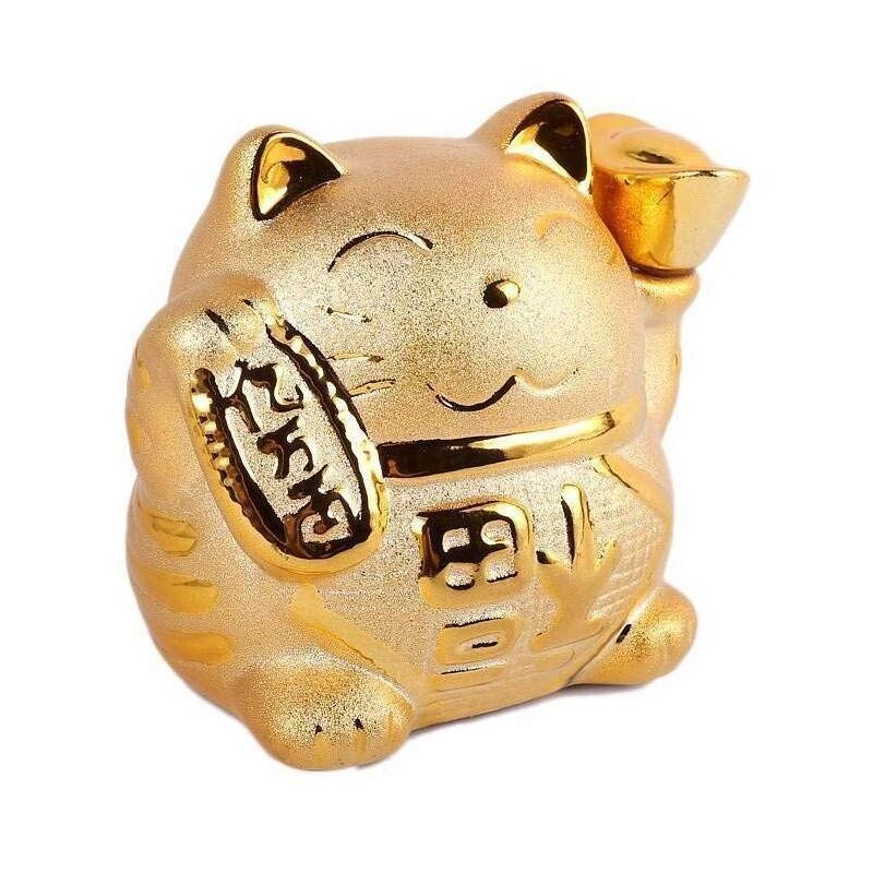 Questo grazioso gatto è considerato in Giappone un vero portafortuna che attira ricchezza, prosperità e fortuna per il suo proprietario. Lo si vede molto spesso nei negozi asiatici, sulle frontiere o vicino alle casse. Il colore dorato per un Maneki Neko, è considerato in Giappone molto benefico, poiché questo colore simboleggia l'oro e quindi la ricchezza e la fortuna. Un modello simpatico e vivace per una decorazione originale e giapponese.