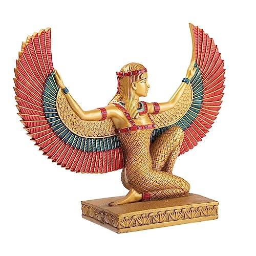 Lachineuse - Statuetta Isis Alata 21 cm - Statua dea Isis rossa e dorata - Statuetta decorativa per la casa in Egitto antico - Oggetto decorativo egiziano - Idea regalo originale