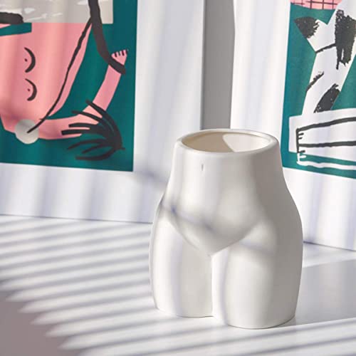 LACKINGONE 1 pz Vaso da Fiori a Forma Corpo Bianco, in Ceramica Minimalista, 12 x 14,5 x 7,5 cm, Vaso Moderno Chic, Decorazione a Casa Ufficio, Contenitore, Pennelli da Trucco, Piante, Fiori Secchi