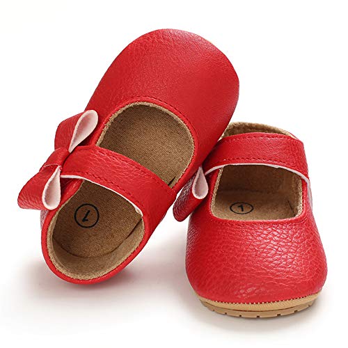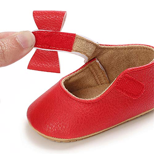 LACOFIA Ballerine neonata Scarpe da Battesimo Primi Passi Bambina Scarpine Principessa Bowknot Antiscivolo per Bimba Rosso 3-6 Mesi