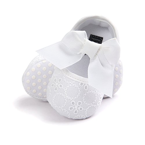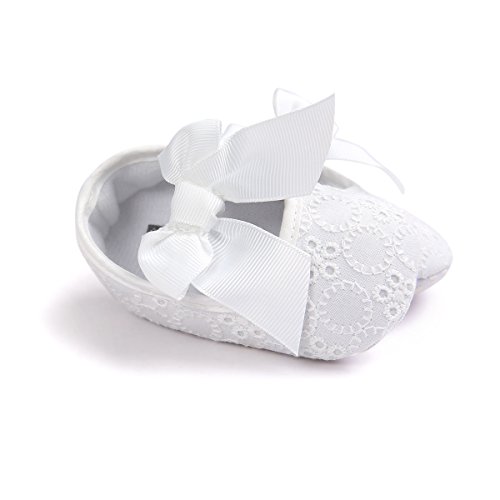 LACOFIA Scarpe Ballerine da Battesimo bianche Suola Morbida Antiscivolo da Primi Passi per Bambina con Bavaglino Ricamato Neonato 6-12 Mesi