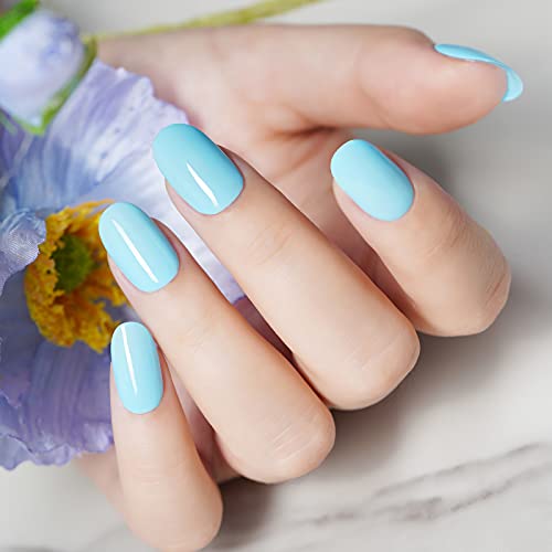 Lacomchir Smalto Semipermanente Penna 3 In 2 LED/UV Smalto Gel In Un Solo Passaggio Smalto Gel Senza Bisogno Di Base Top Coat Per Femminile Principianti, Blu Chiaro
