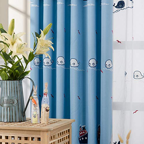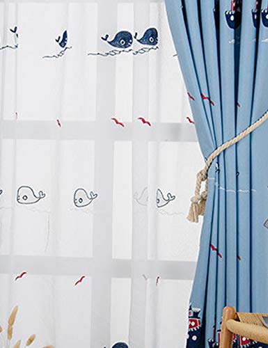 Lactraum Tenda per cameretta dei bambini, in voile trasparente con ricamo a delfino, motivo gabbiano, animali in voile con fettuccia arricciata, 200 x 245 cm (larghezza x altezza)