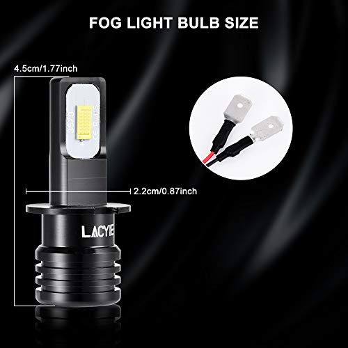H3 LED,LACYIE CSP 60W 3000LM 6000K Bianco Lampadine LED Impermeabile IP68 Kit Sostituzione per Alogena Lampade e Xenon Luci, Fari Abbaglianti o Anabbaglianti per Auto e Moto - 9-36V(2 Pcs)