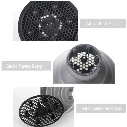 Il diametro dell'uscita dell'aria è di 13,5 cm, che può soffiare i capelli in un'area più ampia. (Si prega di confermare il diametro del vostro asciugacapelli prima dell'acquisto)