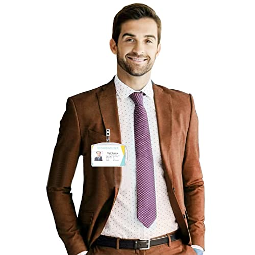 【Contenuto della Confezione】La confezione include 2 protezioni verticali per badge identificativo, foro sul retro per un facile fissaggio a bobine, cordini, clip per cinghia, ecc. Può ospitare 2 carte per te.