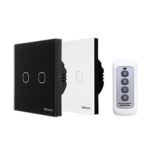 LaDicha Sesoo Sy6-02-D EU/UK Standard 2 Gang 1 Modo Rf433 Remoto Smart Wall Switch Telecomando Senza Fili Funziona con Broadlink RM PRO - Bianco