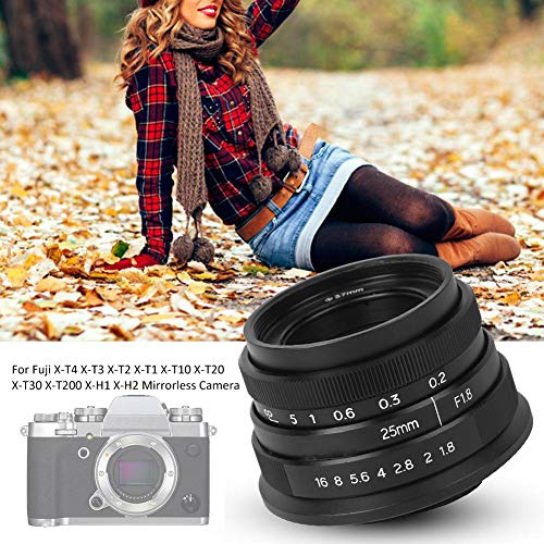 Ladieshow Obiettivo focale fisso verticale da 25 mm f1,8 con montaggio FX per Fuji X-T4 X-T3 X-T2 X-T1 X-T10 X-T20 X-T30 X-T200 X-H1 X-H2 Mirrorless Camera nera