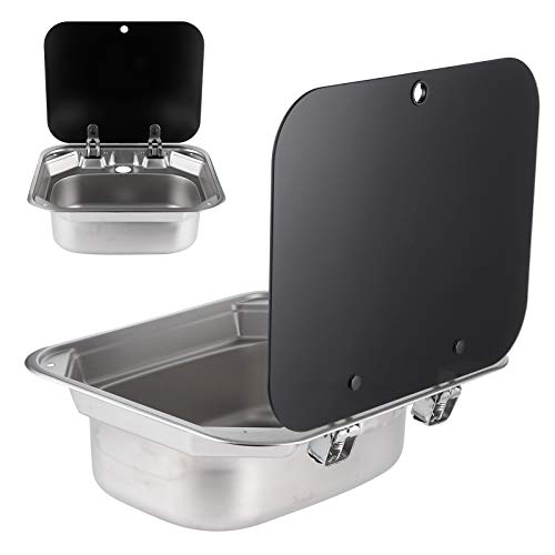 Ladieshow Square in Acciaio Inox lavello Pieghevole da Cucina Singola Vasca con Coperchio in Vetro temperato per Camper Caravan