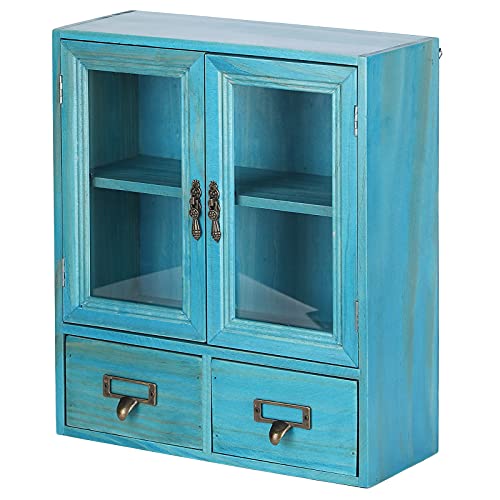 Ladieshow Vetrina Legno, Armadio in Legno, Armadio Vintage Legno, Vetrina Soggiorno, Vetrina Cucina in Legno, Vetrine Legno Vintage con 2 Vani Inferiori E 2 Sportelli Superiori, 14,2x12,2x4,7 Pollici