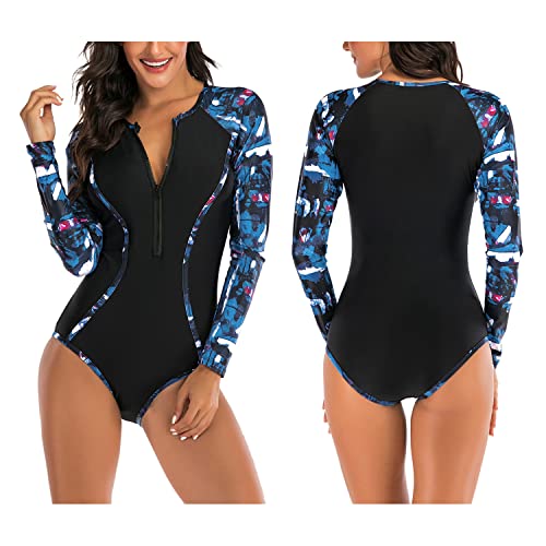 Dimensioni e stile: tuta estiva da surf monopezzo con cerniera frontale, design a maniche lunghe, protezione dal vento e dal sole, diverse dimensioni, con una migliore resistenza alla trazione ed elasticità, il costume da bagno sottile rende la tua figura più accattivante.