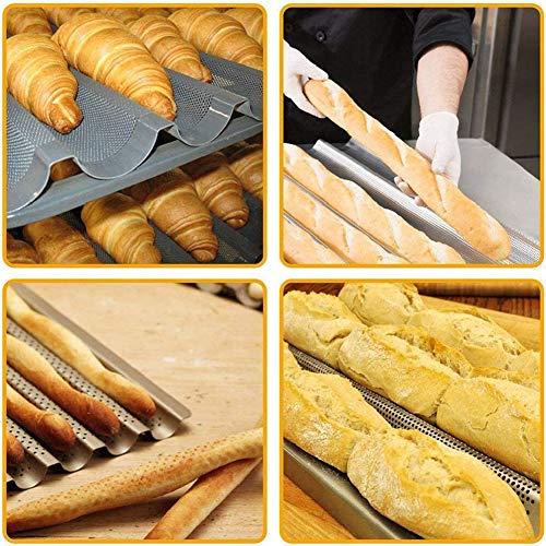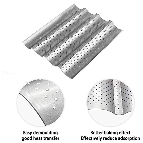Lady of Luck Teglia Baguette, tampo per Baguette 4 Wave Argento Teglia per Baguette Perforata Antiaderente per Cuocere Baguette