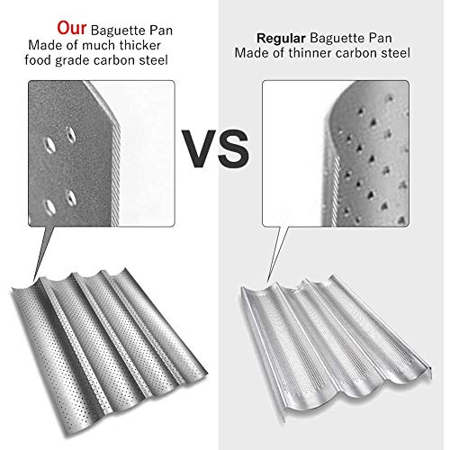 ❀ Design Unico: Numerosi fori della teglia per baguette garantiscono una distribuzione ideale del calore durante la cottura in forno. Grazie ai fori, i'umidità può fuoriuscire dall'impasto, in questo modo durante la cottura le baguette diventeranno belle croccanti fuori e morbide dentro.