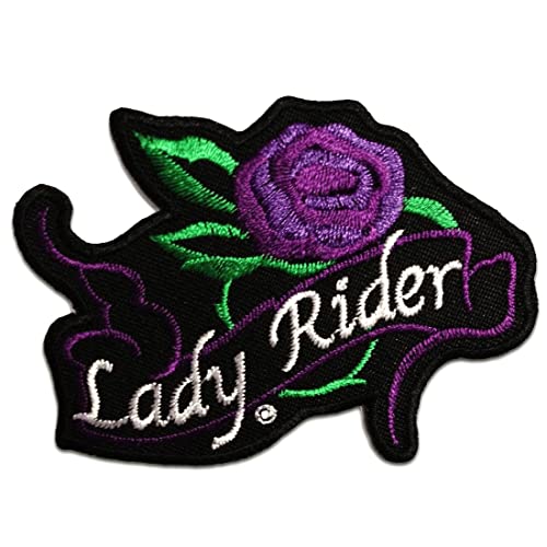 Lady Rider Biker - Toppe Termoadesive Patch Toppa Ricamate, Misura: 9 x 7 cm, Farbvariante:porpora
