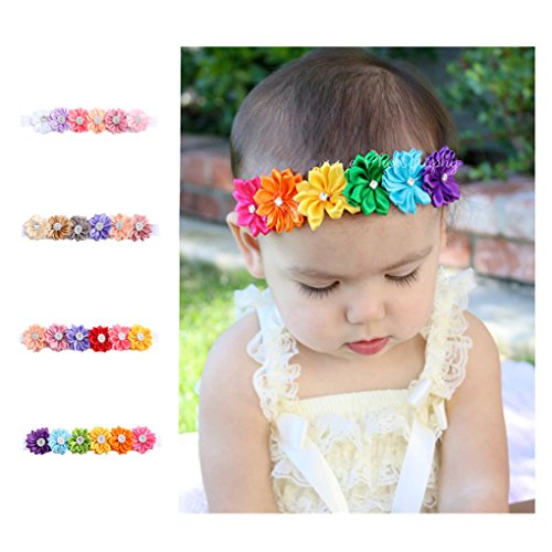 LAEMALLS 4 Pezzi Elastici Fascia Capelli Neonata, Cerchietto bambina, Fiore fascia, Accessori per capelli fotografia, Bambino fascia, Morbida fascia, Multicolore fascia, Fasce per infant 0 a 4 anni#7