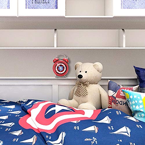Lafocuse Captain Metallo Sveglia Silenzioso con Luce Notturna, Rossa Sveglia con Doppia Campana, Analogico Sveglia da Comodino senza Ticchettio per Bambini Camera da letto Scrivania e da Scaffale 8cm