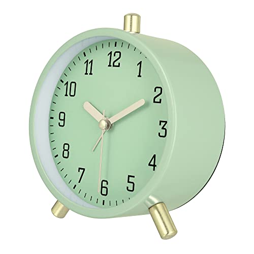 Lafocuse Metallo Sveglia senza Ticchettio con Luce Notturna, Moderno Verde Matcha Sveglia da Comodino Analogico, Classico Silenzioso Semplice Orologi da Scrivania e da Scaffale 11cm