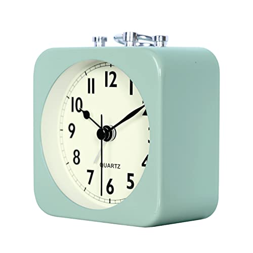 Lafocuse Metallo Sveglia senza Ticchettio, Quadrata Sveglia da Comodino Analogico Verde, Classico Silenzioso Orologio da Scrivania e Tavolo, Portatile da Viaggio 8.5cm