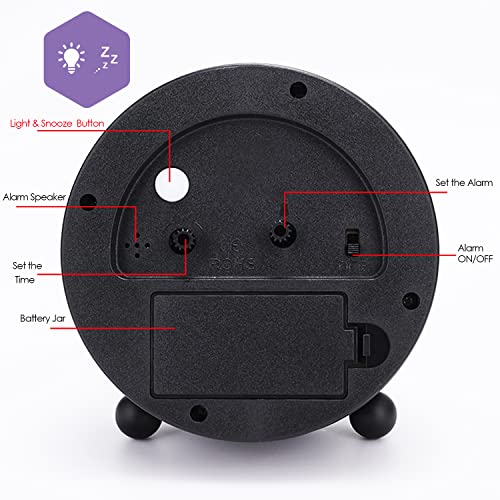 Movimento Silenzioso: Dopo essere stato azionato da 2 batteria AA, la sveglia analogica silenziosa utilizzava un movimento al quarzo di precisione superiore, senza tic tac per chi ha il sonno leggero. (Gli allarmi degli orologi analogici non sono precisi al minuto, generalmente l'errore entro 5 minuti è normale, per favore capisci.)