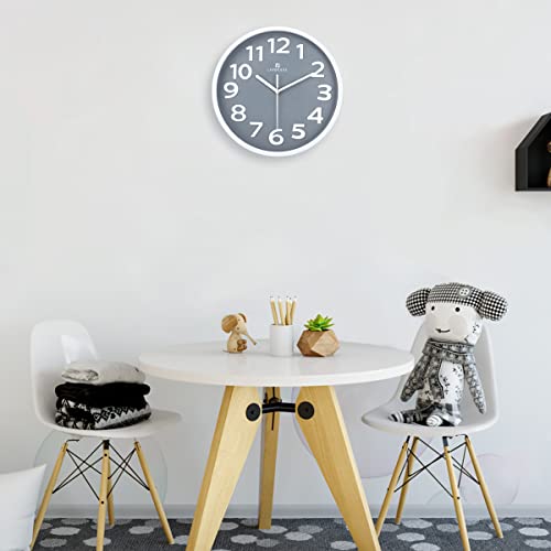Lafocuse Orologio da Parete Grigio Silenzioso Moderno, Numeri 3D Facile da Leggere, Classico Orologio Quarzo senza Ticchettio per Cucina Camera da Letto Soggiorno Ufficio 30cm