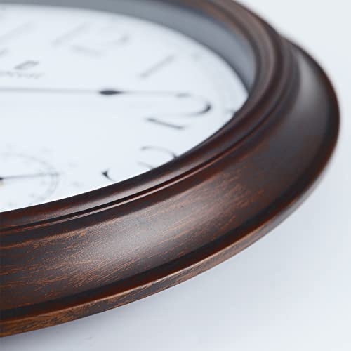 Lafocuse Orologio da Parete Marrone con Termometro e Igrometro, Orologio da Cucina Vintage Silenzioso Decorativo per Soggiorno Ufficio Camera da Letto 30cm