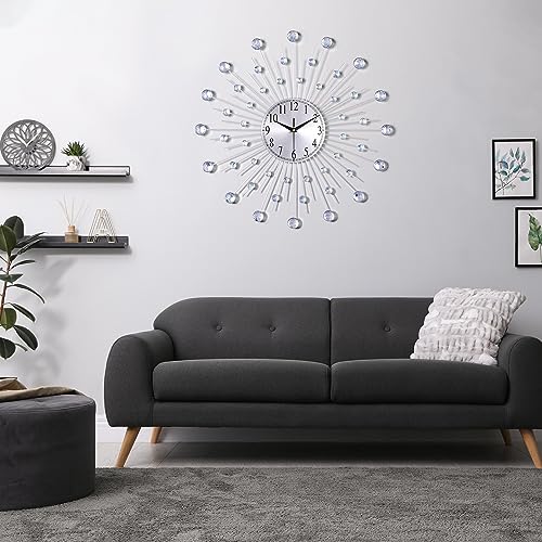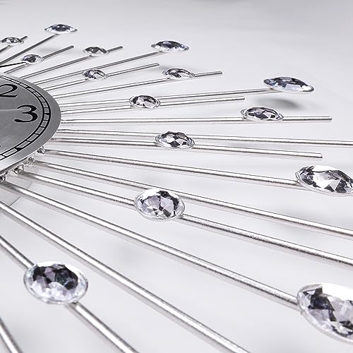 Lafocuse Orologio da Parete con Strass Argento, Grande Metallo Design Creativo, Silenzioso Orologio Moderno senza Ticchettio Art Deco per Soggiorno Camera da Letto Cucina 56cm