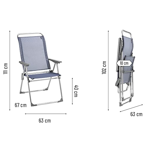 Schienale regolabile in 5 posizioni per comfort ottimale, Supporta fino a 100 kg grazie al rivestimento Batyline con cuciture rinforzate, Resistente ai raggi UV