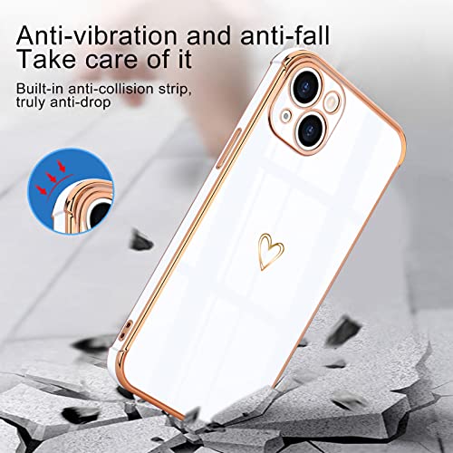 Lafunda Compatibile per iPhone 13 Cover Amore Cuore Custodia per Donne Morbido Silicone Sottile Case con Protezione Fotocamera Dorata Placcatura Cornice Paraurti per iPhone 13 Bianco