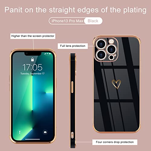 Lafunda Compatibile per iPhone 13 PRO Cover Amore Cuore Custodia per Donne Morbido Silicone Sottile Case con Protezione Fotocamera Dorata Placcatura Cornice Paraurti per iPhone 13 PRO Nero