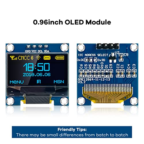 Lafvin 5 PCS 0.96 pollice OLED Display Module 128x64 Pixel Oled Display Screen SSD1306 Driver I2C IIC Serial Self-Luminous display screen Board Compatibile con Arduino Raspberry Pi(Blu e Gialllo)
