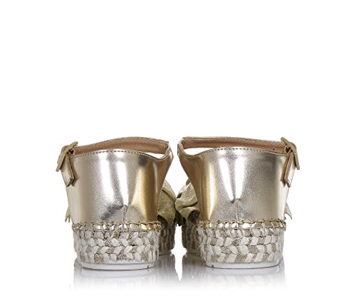 LAGOA Sandalo Dorato in Ecopelle, con Fasce plissettate con Effetto Glitter sul Davanti, Bambina, Ragazza, Donna-34