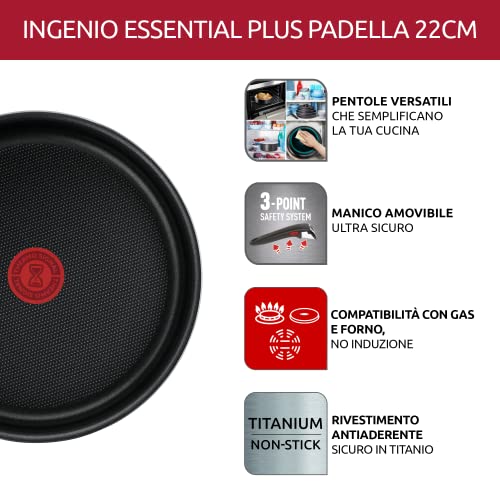 Lagostina Ingenio Essential Plus Padella Ø 22 cm, Padella Antiaderente in Alluminio per Gas e Forno, con Indicatore di Cottura Thermosignal, Utilizzabile con Manico Removibile
