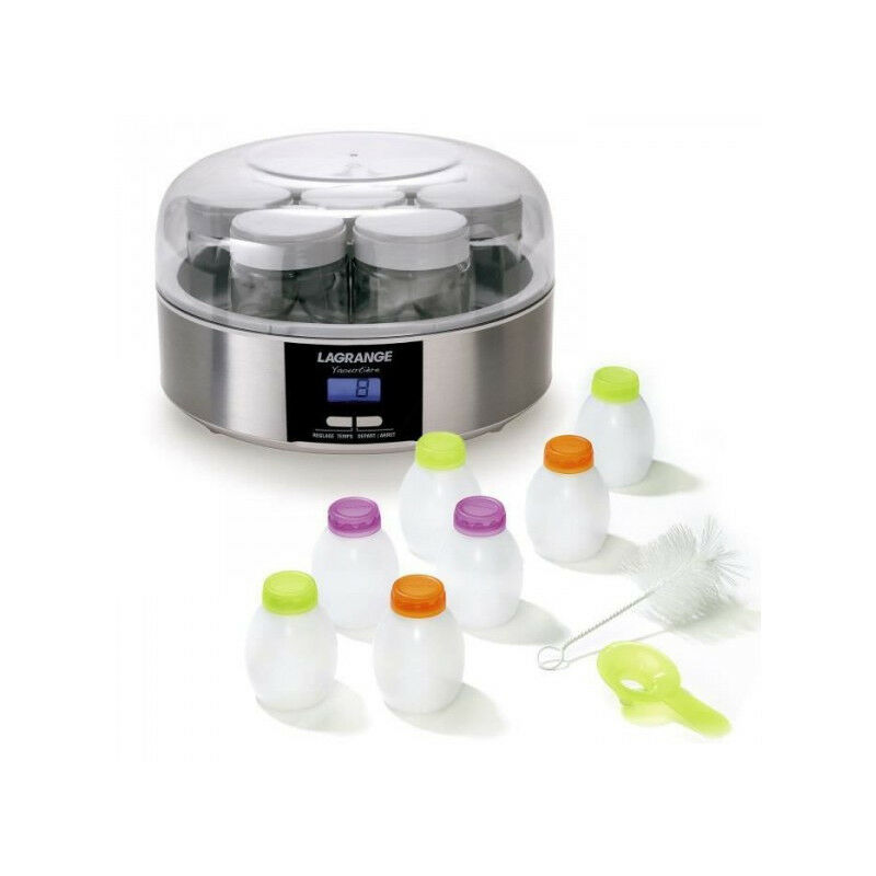 Lagrange 439103 yogurtiera per creare deliziosi yogurt e yogurt da bere! È semplice da usare, programmabile e adatta ai più golosi. Facile da usare Dotata di uno schermo di facile utilizzo, la yogurtiera si ferma automaticamente e squilla a fine programma. Precisa, la yogurtiera è programmabile fino a 15 H Permette di realizzare una moltitudine di ricette con latte intero, parzialmente scremato e scremato, grazie ad un perfetto adattamento dei tempi di preparazione frutta o marmellata per la preparazione. Viene fornito anche un kit di 7 flaconi per la preparazione di yogurt da bere.Facile conservazionePoiché è necessario rimuovere i coperchi delle vasetti di yogurt da bere quando li si prepara nella yogurtiera, LAGRANGE ha progettato e brevettato coperchi intelligenti che sono progettati per 'adattarsi a ciascuno l'altro vicino all'apparecchio, per riporlo facilmente e velocemente. Vasetti per yogurt pratici e personalizzabili! I coperchi delle vaschette dello yogurt hanno una zona di