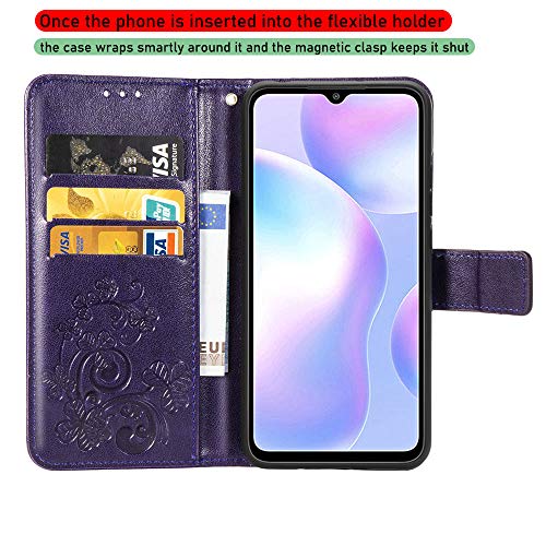 LAGUI Adatta per Cover Xiaomi Redmi 9A, Custodia a Portafoglio con i Disegni in Rilievo, Dotata di Cordino. Porpora
