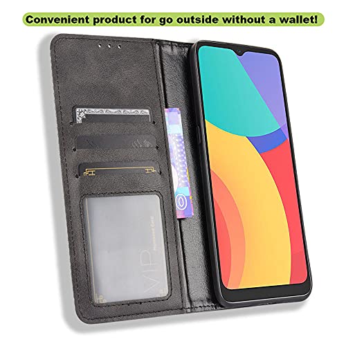 LAGUI Adatto per alcatel 1S 2021 Cover Protettiva in Morbido TPU + PU Custodia Portafoglio a Chiusura Magnetica con Pacchetto Anticaduta Antiscivolo Antiurto, Nero