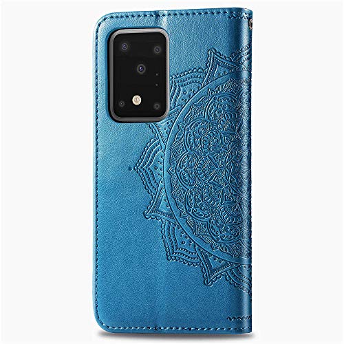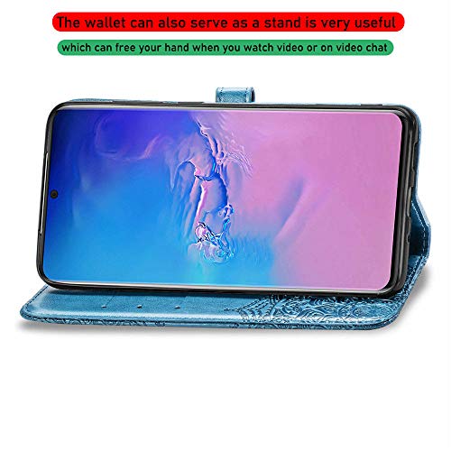 LAGUI Cover Flip a Libro Compatibile per Samsung Galaxy S20 Plus, Custodia a Portafoglio con i Disegni in Rilievo, Blu
