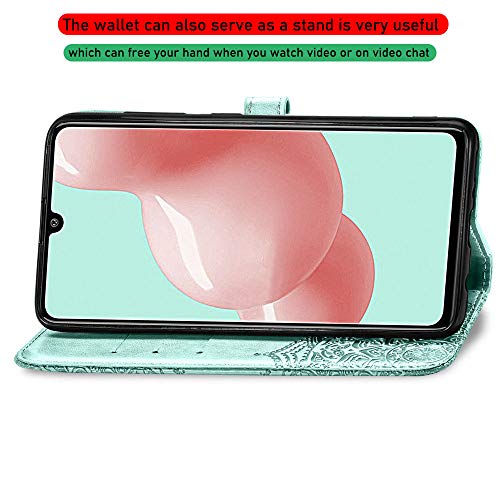 LAGUI Cover Flip a Libro Compatibile per Samsung Galaxy A41, Custodia a Portafoglio con i Disegni in Rilievo, Verde