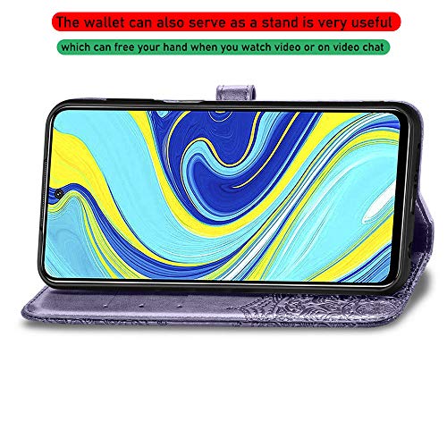 LAGUI Cover Flip a Libro Compatibile per Xiaomi Redmi Note 9S, Custodia a Portafoglio con i Disegni in Rilievo, Porpora