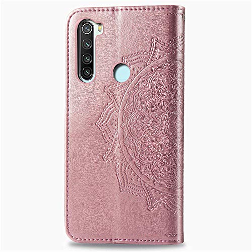 LAGUI Cover Flip a Libro Compatibile per Xiaomi Redmi Note 8T, Custodia a Portafoglio con i Disegni in Rilievo, Oro Rosa