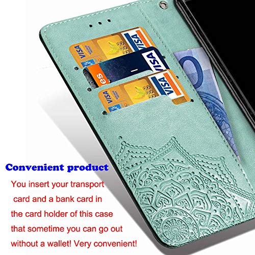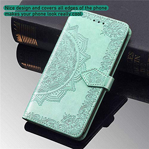 LAGUI Cover Flip a Libro Compatibile per Xiaomi Redmi 9, Custodia a Portafoglio con i Disegni in Rilievo, Verde