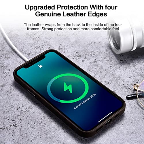 LAHappy Cover per iPhone 13 PRO Max/13 Pro/13/13 Mini, Custodia in Vera Pelle Custodia Protettiva Antiurto AntiGraffio Sottile Case Compatibile con Magsafe,Nero,13 PRO 6.1"