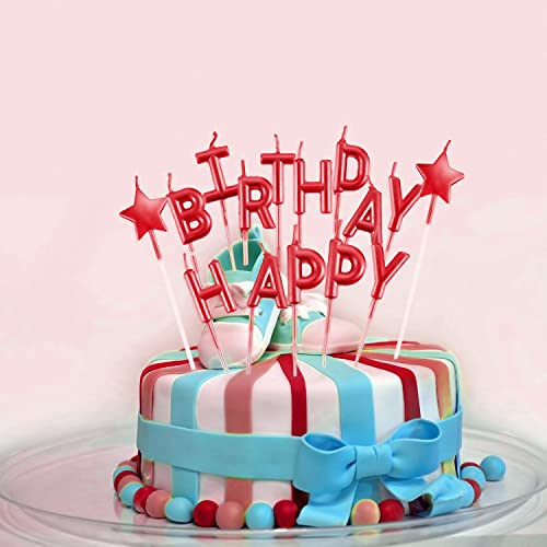 Lahviuu Candeline Happy Birthday, Particolari Candele di Compleanno, Cake Topper Decorazioni Torta Candele Decorative per Feste di Compleanno (Rosso)