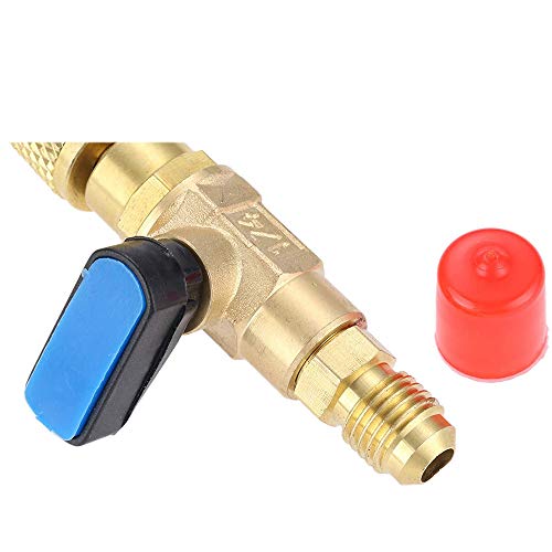 FACILE INSTALLAZIONE: la valvola a sfera 'interruttore compatto può essere azionata con una mano - si avvita sull'estremità del tubo di carico Design della valvola a sfera con un quarto di di 3 colori (rosso / giallo / blu) interruttore della maniglia della valvola codificato per il controllo del refrigerante. Con un angolo di 45 gradi sul sito della porta di servizio per un accesso più facile.
