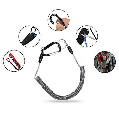 LAIBOREC - Cordicella per attrezzi da pesca, retrattile, con filo di sicurezza a spirale, 7 pezzi, accessori con moschettone e anello spaccato per pinze per labbra, attrezzatura da barca, kayak (nero)
