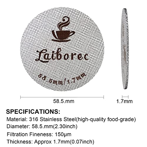 LAIBOREC Puck Screen, schermo filtro espresso 58.5mm, schermo doccia inferiore riutilizzabile in metallo caffè compatibile con macchina caffè espresso 58.5mm cesto portafiltro, filtro caffè barista
