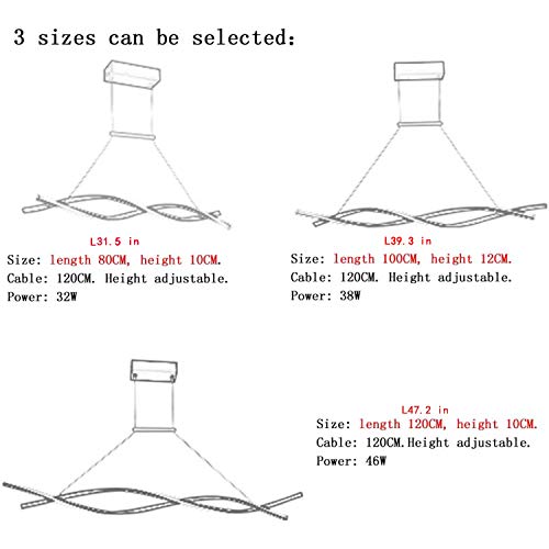 LAIDEPA Lampada a sospensione a LED dimmerabile Luce pendente Creativo Spirale Design Lampadario per telecomando da tavolo da pranzo, soggiorno cucina Modern Home soffitto lampade,Bianca,L47.2 in